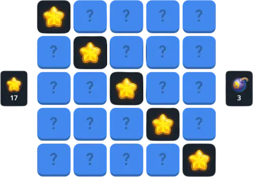 Суть игры заключается в грамотном управлении рисками на стандартном игровом поле размером 5 на 5 клеток. Игрок делает предварительную ставку и последовательно начинает открывать скрытые ячейки. Внутри игрового поля спрятаны два принципиально разных типа объектов: безопасные звезды, которые приносят прибыль и увеличивают общий коэффициент, и опасные мины, которые моментально сжигают всю сделанную ставку.